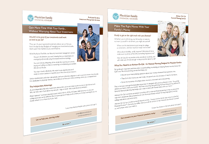I developed a comprehensive brand identity that positions Physician Family Financial Advisors as the trusted financial expert for physicians with kids. The logo uses clean, professional typography with a distinctive mark that reflects their tagline - Be certain.™ The icon suggests both stability and growth—crucial psychological triggers for financial services.